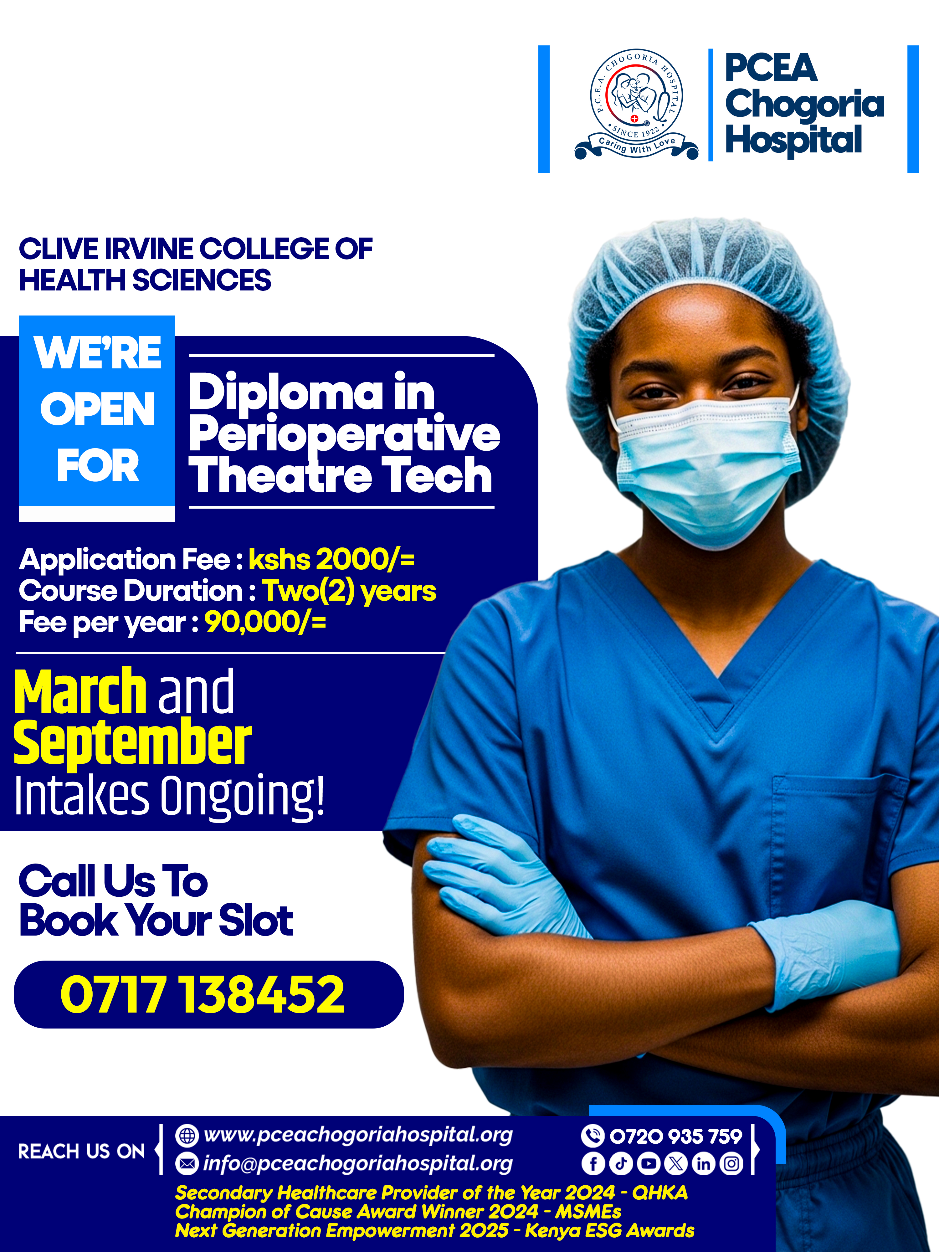 Looking to build a competitive career in the medical field? At PCEA Chogoria Hospital, we are proud to nurture the next generation of skilled healthcare professionals through the Clive Irvine